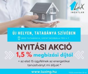 A LUX INGATLAN tatabányai irodája 10.27-én visszatér, most már új helyen a város központjában! És hogy megünnepeljük, nyitási akcióval várunk egészen november 30-ig! És jöhet